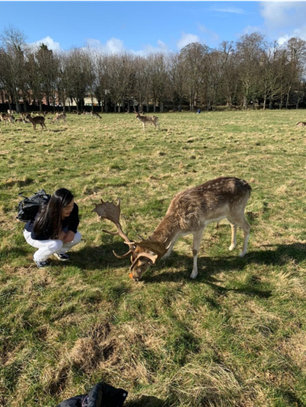 たくさんあります。一つ目は、ダブリンの中心にある Trinity College の図書館です。ここは本の貸し出しをする図書館とは異なり、一つの観光地になっています。この図書館は、スターウォーズのモチーフになったこともあり有名です。また同じ場所に大きな美術館もありダブリンの歴史に触れることができます。二つ目は、phonenix park です。ここはとても広い公園で鹿がたくさんいます。幸運にも私は一度目に訪れたときに鹿の群れに出会えましたが、友達は何回も行ってやっと出会えたそうです。日本の奈良にいる鹿とは違い、サイズも大きいし、ツノが生えています。天気がいい日にこの公園でゆっくりできたのはとても幸せでした。三つ目は、EF のアクティビティーで毎週末に予定されていた Cliff Walk です。このアクティビティーは無料なので友達と毎週末参加していました。アイルランドにはたくさんの自然があります。わたしは最初ハイキングのような気軽な気持ちで参加していましたが、実際はかなり過酷でした。しかし、自分で歩かないと見られないような絶景の数々に出会い、友達と感動を共有し、素敵な思い出です。四つ目は、北アイルランドにある世界遺産 Giant’s Causeway です。同じアイルランドでも、北アイルランドはイギリス領です。海岸沿いに広がる石柱群はとても迫力がありました。
